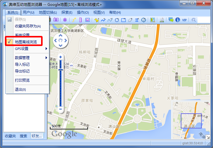 选 择 【 系 统 】 → 【 地 图 离 线 浏 览 】 选 择 此 功 能 后 , 菜 单 项 被 复 选