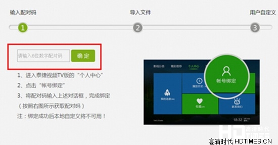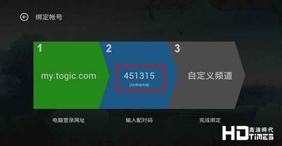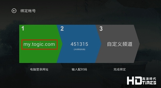 将“账号绑定”页面中间显示的配对码输入到电脑上,盒子端会提示完成绑定;