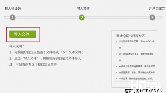 点击“导入文件”按钮导入下载好的.tv格式自定义频道文件。文件内的自定义频道将自动加载到你的网络账号;
