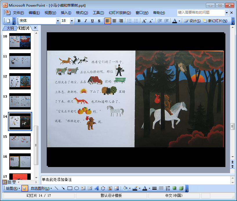 小马小熊和苹果树是一本十分经典的绘本。该绘本内容不仅富有情趣而且充满着生活哲理。本节内容东坡小编为大家整理带来的是一份高清完整版小马小熊和苹果树绘本ppt,如果你想要查阅小马小熊和苹果树的故事的话,不妨就来看看这份ppt绘本吧!