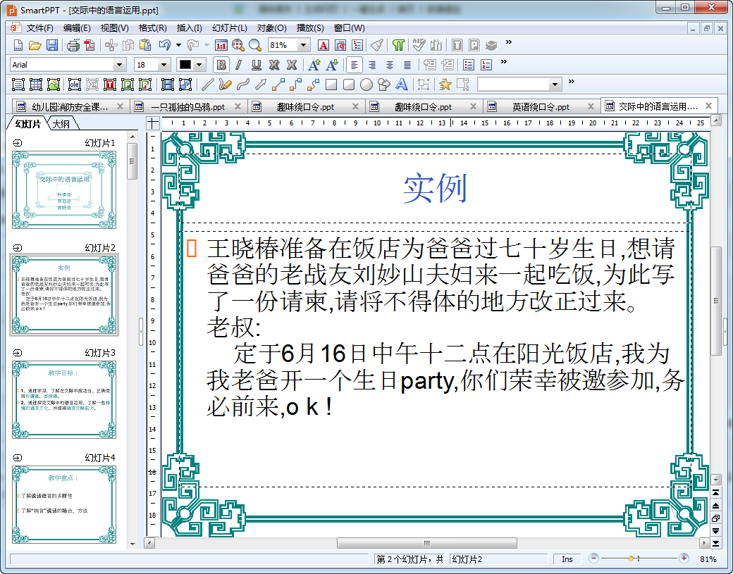2、通过探究交际中的语言运用,了解一些传统的语言文化,并提高语言交际能力。
