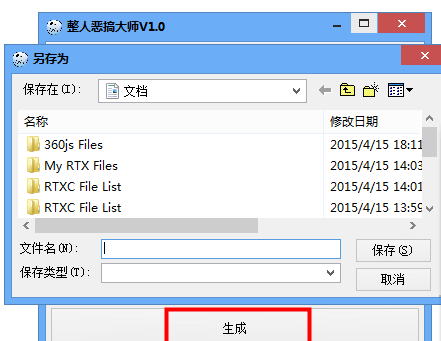 2、点击【生成】,就可以另存为一个整蛊小工具,把它发给小伙伴就行了