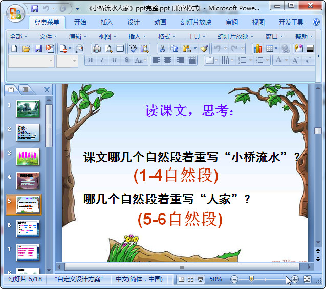 小桥流水人家ppt完美版课件,给人一种静谧宁静的美好感觉。同时又深深地表达了自己对故乡的深深思念之情哦。非常的不错,快来东坡下载使用吧。