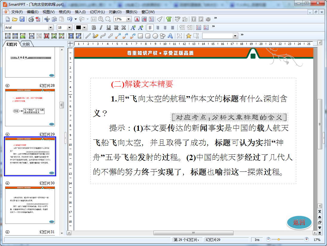 1.用“飞向太空的航程”作本文的标题有什么深刻含义?