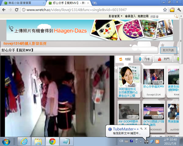 1.開啟要擷取的影音網頁,TubeMaster++ 便能自動捕捉影片的下載網址。