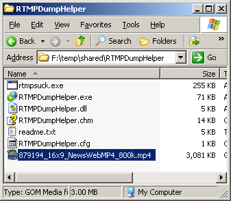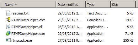 下载RTMPDumpHelper和所有文件提取到一个新文件夹。你必须有这个文件夹的写权限,所以RTMPDump工具包能够拯救RTMP流进你的磁盘。