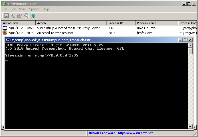 请注意,RTMPDumpHelper效果只是暂时的。一旦您退出RTMPDumpHelper,dll将脱离您的Web浏览器,你可以使用Web浏览器正常(没有RTMP重定向)。
