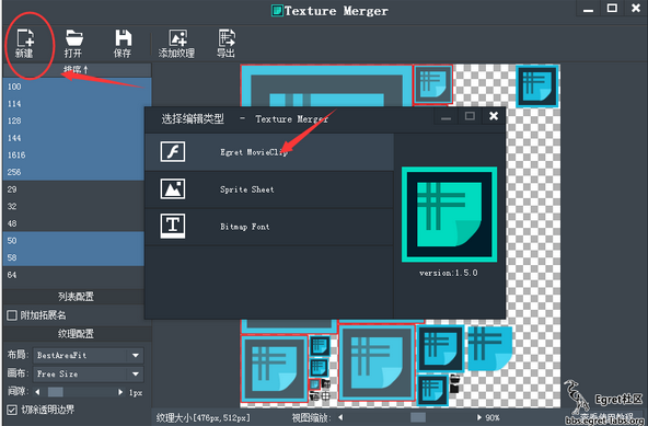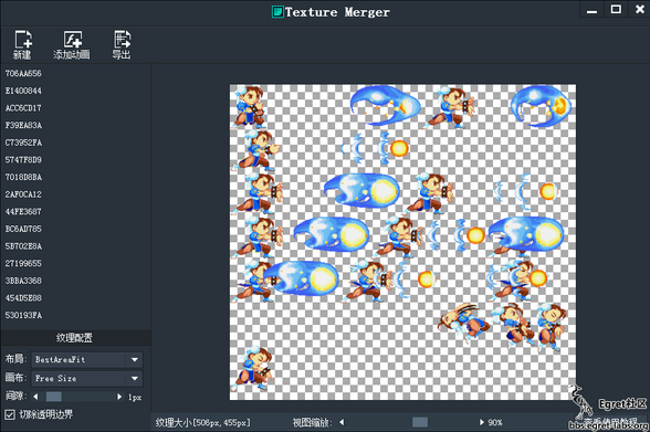 Texture Merger 可以方便的将 GIF 和 SWF 动画转换为 Egret 支持的动画格式