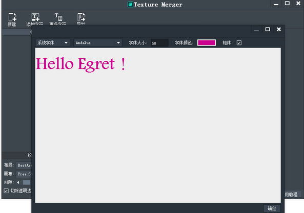 Texture Merger是一款纹理集打包和动画转换工具,可将零散纹理拼合为整图,同时也可以解析SWF、GIF动画,导出可供Egret使用的配置文件。