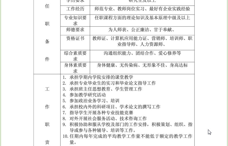 7、完成学校规定的其他教学、科研、公益服务工作。 二、讲师职务岗位基本职责:
