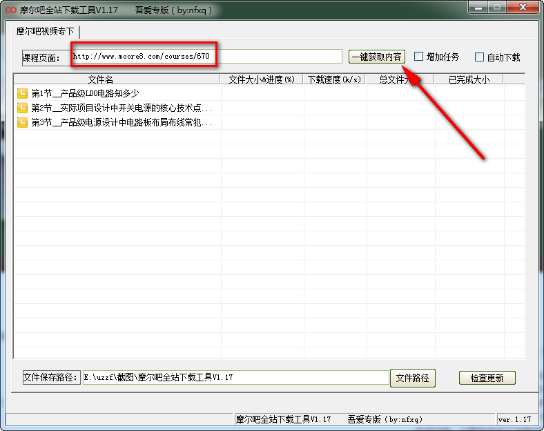 摩尔吧是一个专为电子工程师打造的在线课程视频学习网站,它上面有很多实用的学习课程,但都是收费的,东坡小编带来的摩尔吧全站下载工具是一款可以免费下载所有摩尔吧课程的工具,它绿色、使用简单,关键是完全免费,推荐给有需要的朋友使用!