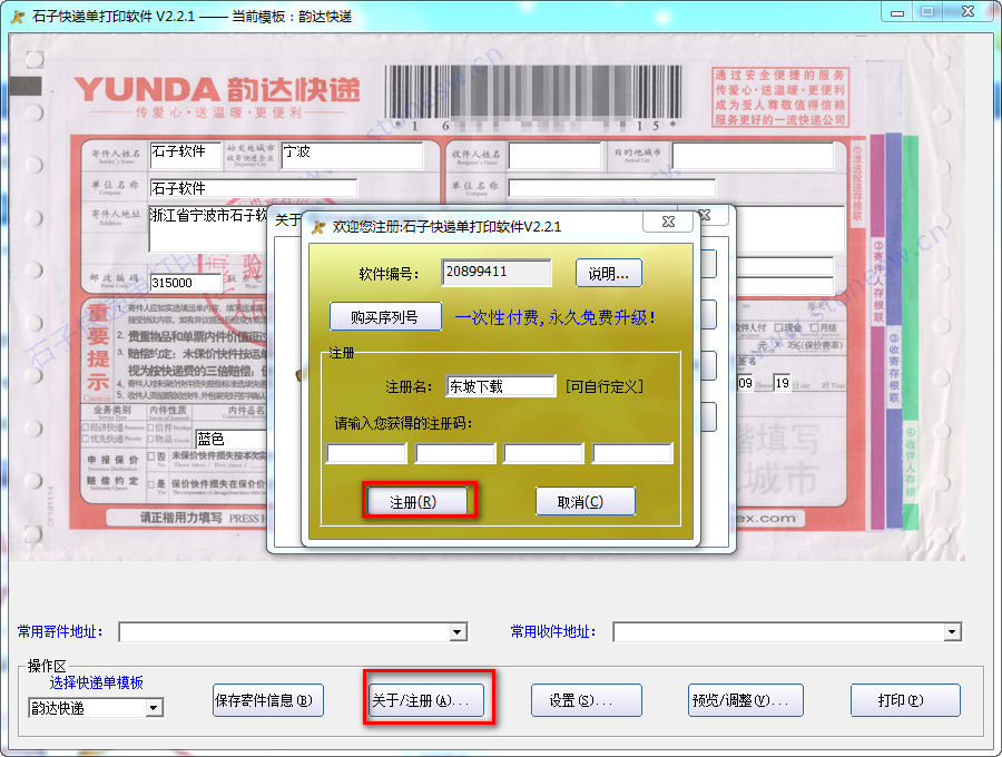开网店或者是做网络营销都需要经常寄快递,如果数量多一张张填会很麻烦,东坡小编带来的石子快递单打印软件破解版应该能帮到你,它是将模板扫描到软件中,你可以将平时填的寄件人信息保存下来,打印出来的快递单就只需要填写收件人即可,非常方便,推荐给有需要的朋友使用!
