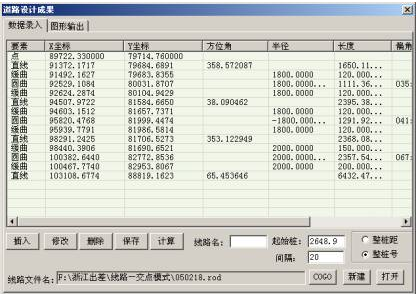 5.根据选择整桩距或整桩号生成中桩坐标文件:线路同名.dat文件,除此以外还可以通过COGO模拟线路的投影桩号及偏线距。