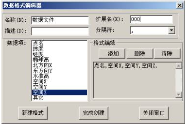 可以选择的数据项有:点名、纬度、经度、椭球高、北方向X、东方向Y、水准高、空间X、空间Y、空间Z、其它。