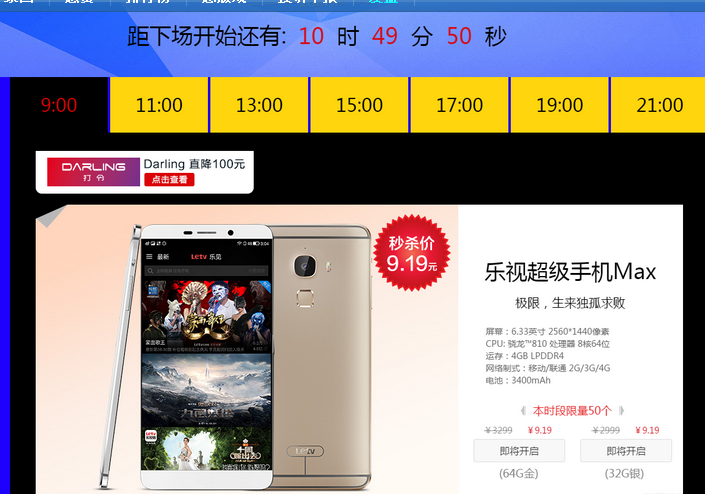 919乐迷节乐视还准备了7场秒杀专场、会员专场、配件及衍生品专场、生态专场等活动,共计5亿元福利倾情回馈广大乐迷。据乐视商城活动页面显示,在今天的13:00和17:00,乐视还将举办两场超级手机1折秒杀活动,数量依旧是乐Max、乐1Pro各50台。