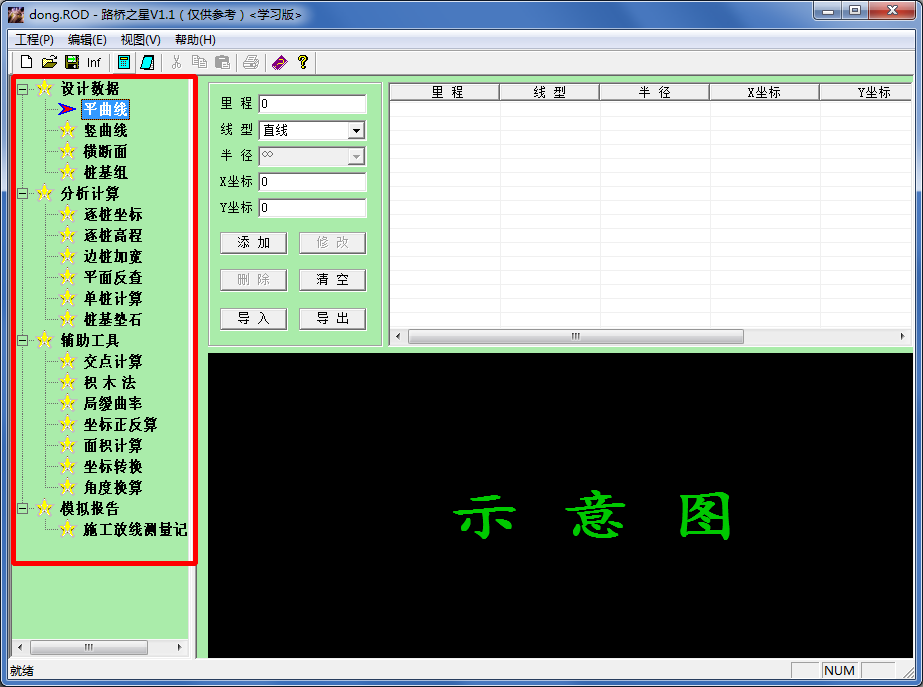 路桥之星是一款道路坐标计算软件,软件绿色小巧,无需安装,可以方便,测量的目的当然是为了指导工程施工,把图上的东西落到实地!