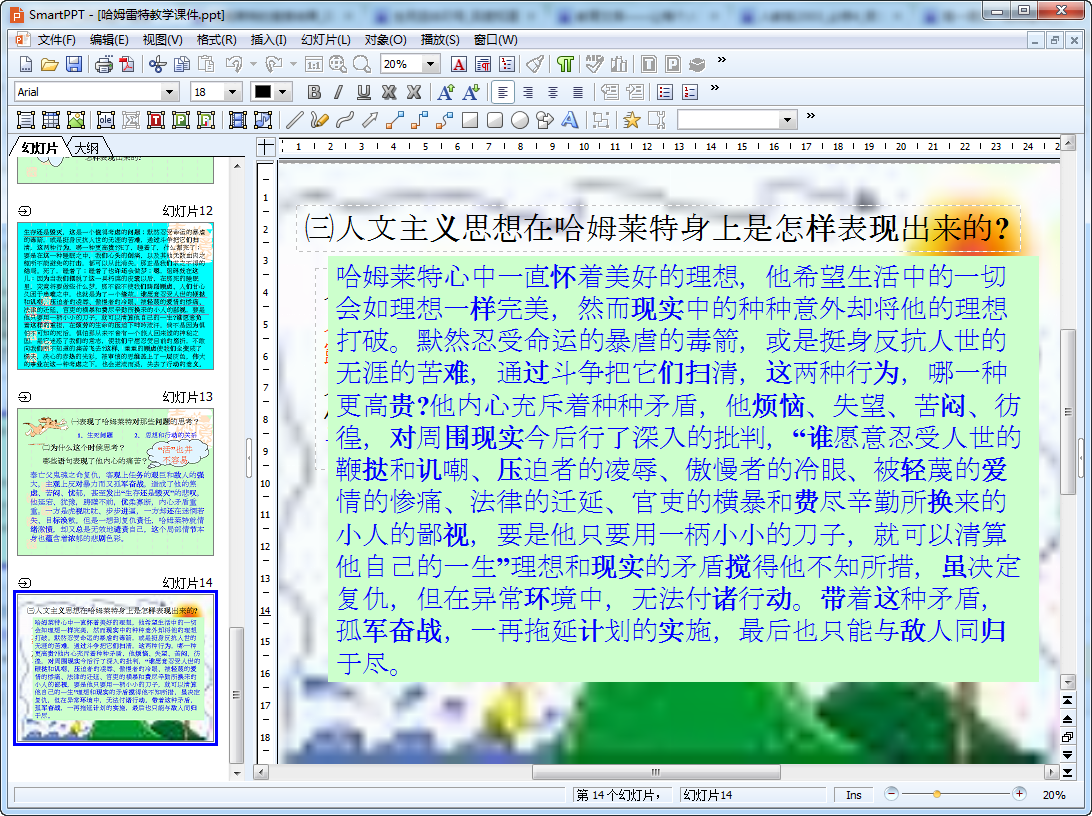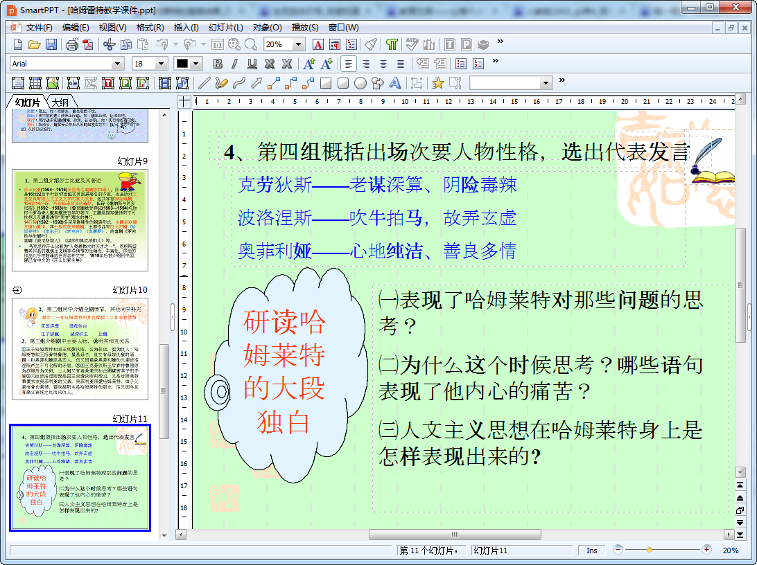 2、通过文本阅读,在鉴赏、品味戏剧语言的过程中理解哈姆莱特的复杂性格及人文主义在他身上的体现。