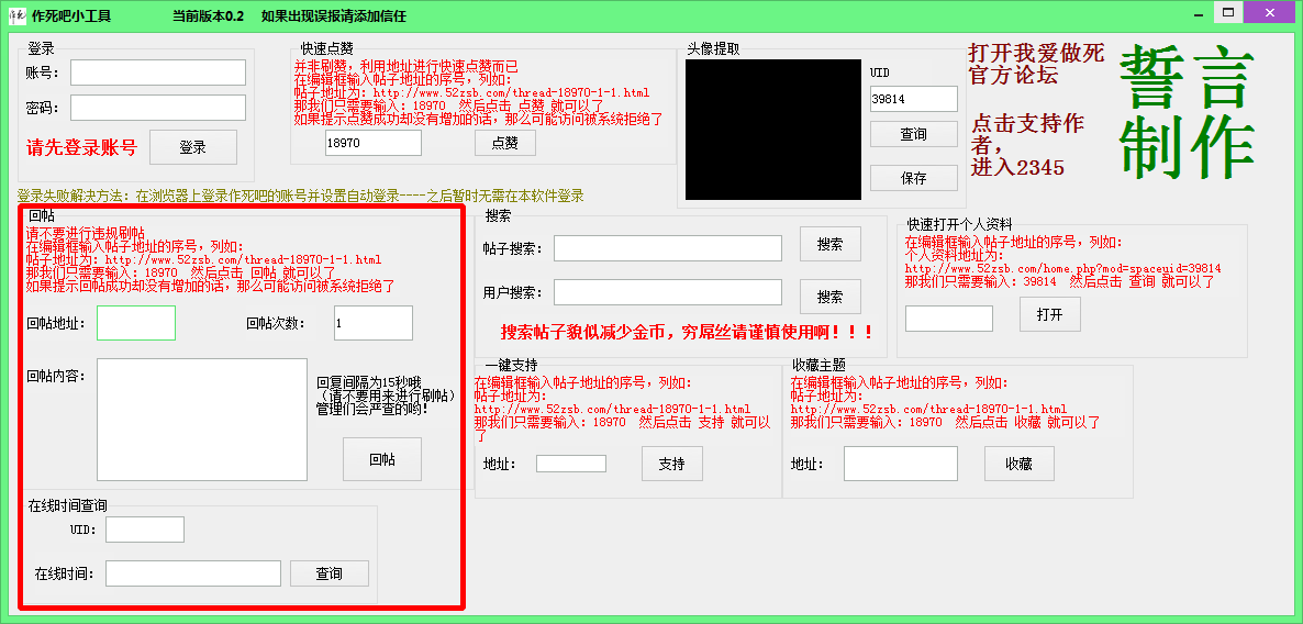 做死吧小工具是一款专为我爱作死吧论坛制作小工具,提供快速回帖、一键点赞、收藏主题、帖子搜索等等功能,帮助你方便快捷的操作作死吧论坛,需要的朋友点击下面的地址即可免费下载使用。