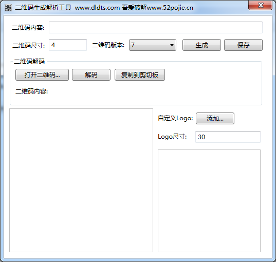 吾爱破解二维码生成解析工具(二维码生成工具)是一款可以用于二维码生成和二维码解析的工具。用户可以轻松免费制作二维码,还可以自定义二维码的logo和解析二维码,欢迎下载使用!