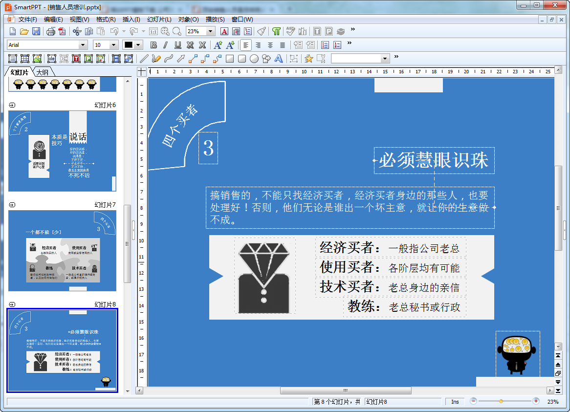 这是一篇销售人员培训ppt,该篇中讲解了作为销售应该注意的一些事情与技巧,教会你如何成为一名成功的销售人员,对于那些想进步的销售人员以及需要这样一份培训ppt的朋友可以来下载!