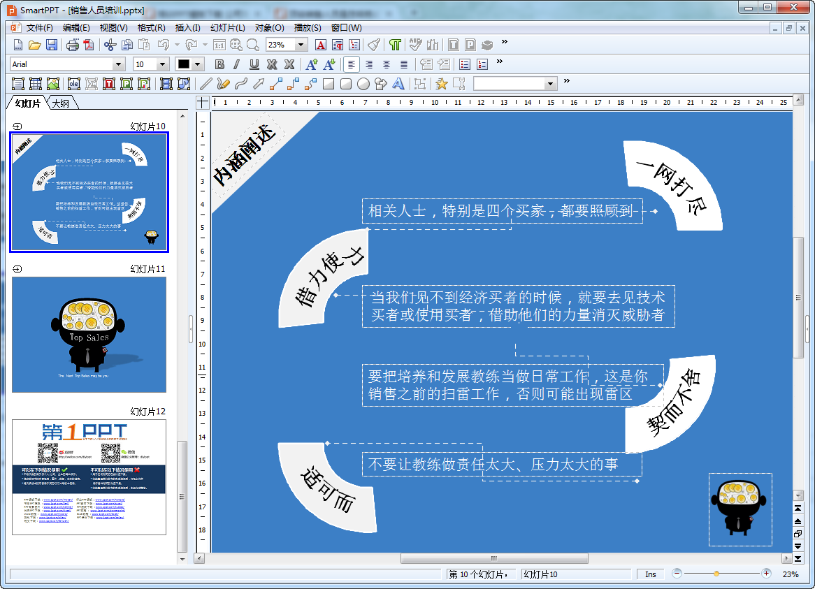 一网打尽(相关人士,特别是四个买家,都要照顾到),借力使力(当我们见不到经济买者的时候,就要去见技术买者或使用买者,借助他们的力量消灭威胁者),契而不舍(要把培养和发展教练当做日常工作,这是你销售之前的扫雷工作,否则可能出现雷区),适可而止(不要让教练做责任太大、压力太大的事)