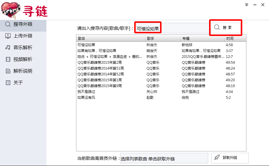 寻链是一款免费的外链查询制作解析软件,无广告,无插件,链接超快,为用户专门制作推出的绿色外链搜索制作软件,支持音乐解析,视频解析,网盘解析,音乐上传等功能。