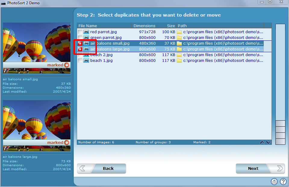 PhotoSort是一款快速、紧凑并且简单易用的工具,帮助你找出和移除完全相同和接近相同的图片,不管它是桌面壁纸、家庭照片或其他任何类型的图片文件,它们都会常常出现许多重复的现象,而且在众多的文件中找出两张重复的图片需要花费大量的时间,通过PhotoSort用户就可以在短短几分钟内找出重复的图片,PhotoSort在比较重复图片的时候可以同时看到;软件功能虽然单一,但是可以帮助用户轻松、快速的找出电脑中的重复图片非常的实用。