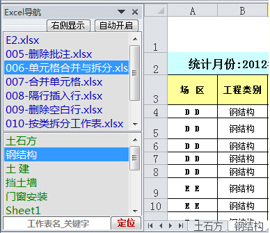 3、树状图导航的效果如下图:(可以通过定位按钮,快速定位关键字工作表)