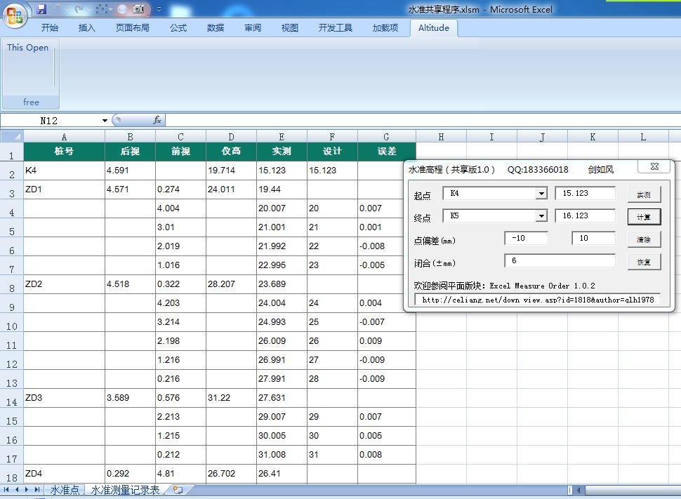 EXCEl高程计算使用说明