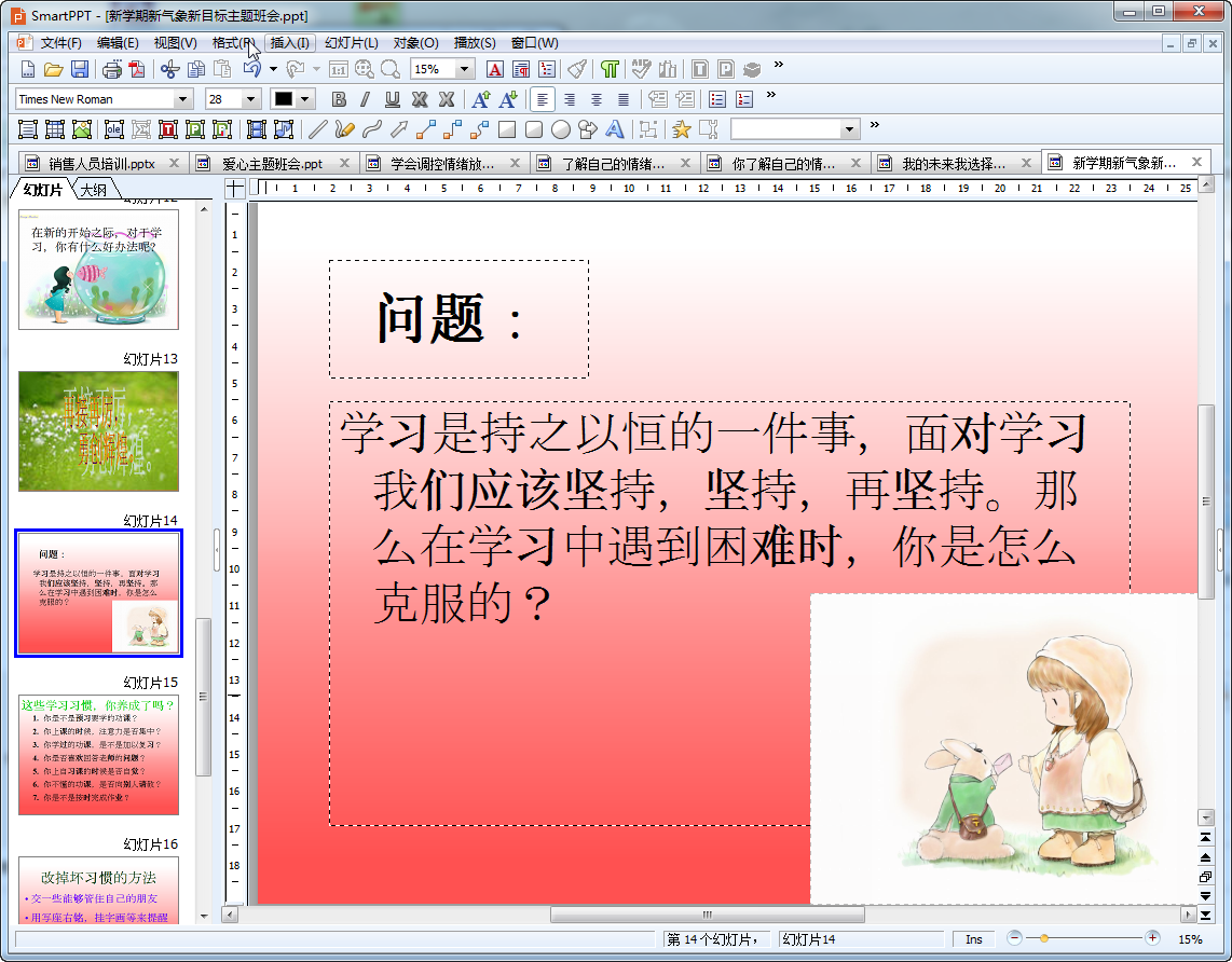 这是一篇小学的新学期主题班会ppt共有19页,在开学之际放假之余,老师们可以使用这篇ppt开帮助学生们快速的调整好心态树立目标,又需要的朋友可以来下载!