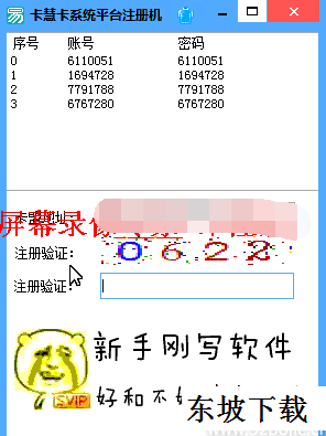 卡慧卡系统平台注册机就是一款可以快速获得点卡账号与密码的注册工具。大家不需要太多的手动操作,只需要输入验证码。就能够直接进行获取。觉得需要都可以来此下载!
