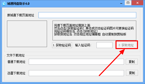 深蓝城通网盘无广告下载助手,复制下载地址到软件,填写验证码即可获得下载地址,有三种下载地址方便选择,不必再烦恼网页个各种广告弹窗。