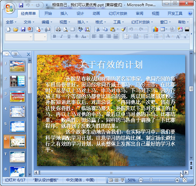 相信自己我们可以更优秀是一份励志,相信自我,增强自信的初一主题班会ppt课件。十分的精彩,通过不同的人物和事迹来教导同学们更加自信,让同学们变的更加优秀!