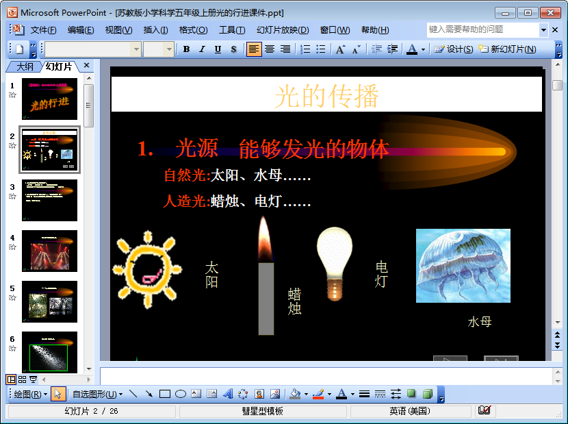 这是一份以ppt形式展现的苏教版小学科学五年级上册光的行进课件(以下简称为光的行进ppt)。该ppt共由26页组成,内容主要围绕“光的传播”进行开来,寓教于乐,是一份十分具有引导性的ppt课件,需要下载得朋友们只需轻轻点击本文相应的下载地址即可进行下载!