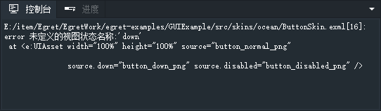 通过“状态”面板可以方便查看Exml皮肤在不同状态下的呈现效果。同时可以切换到不同状态对Exml皮肤进行编辑。如:按钮的normal, over, down, disabled四个状态。