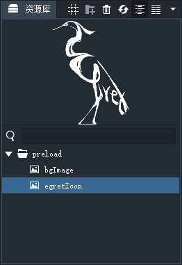资源库面板中展示当前项目中所有可以被加载的资源,资源库中的资源依赖于项目使用的资源插件。 您也可以通过拖拽的方式将资源库面板中的资源拖拽到文档区的设计视图模式中以创建该UIAsset。