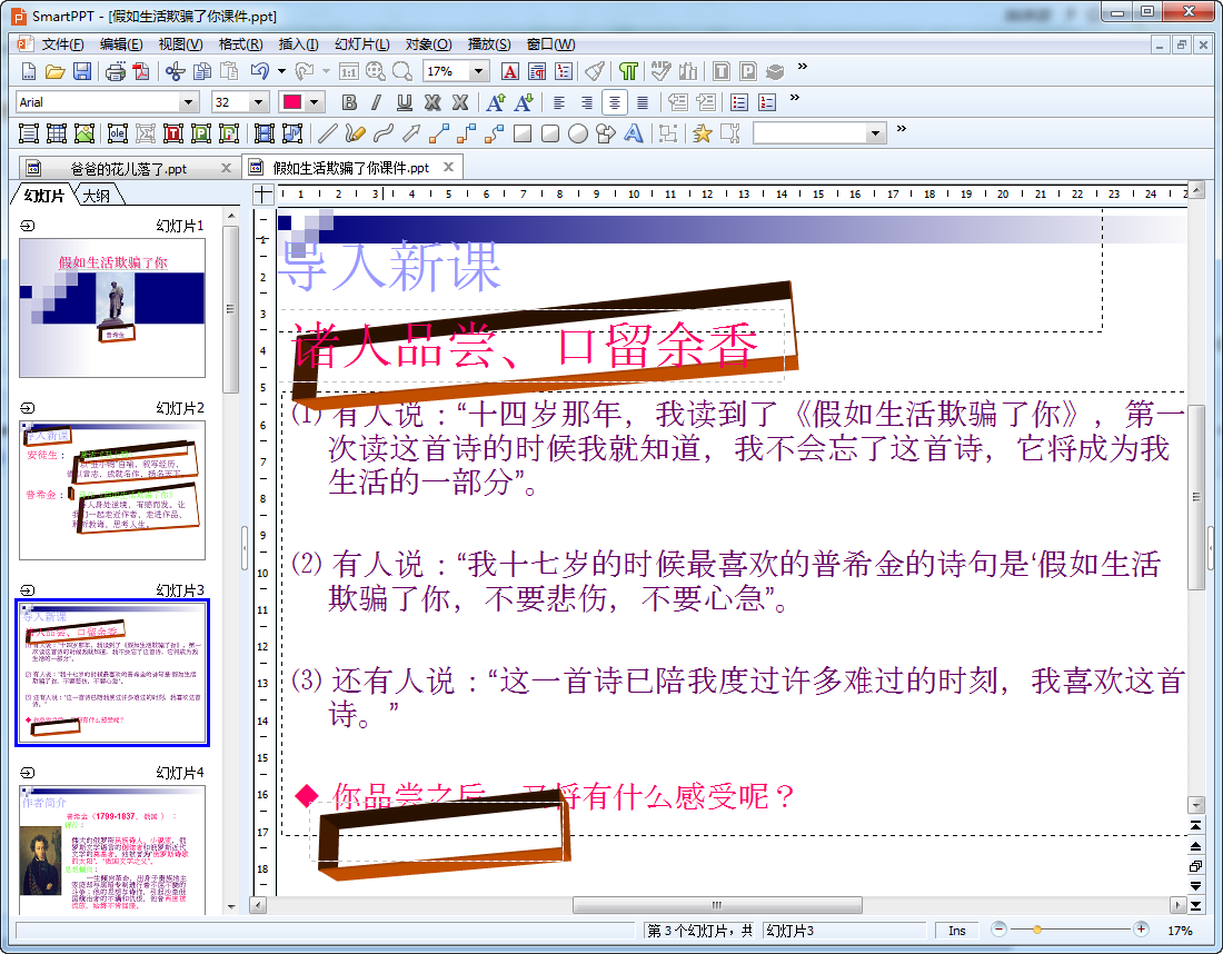 这是语文课文假如生活欺骗了你教学课件ppt,该ppt共有15页完全免费,一些喜欢用ppt教学的老师们可以来选择这款ppt,不会让你失望,有兴趣的朋友快来下载吧!