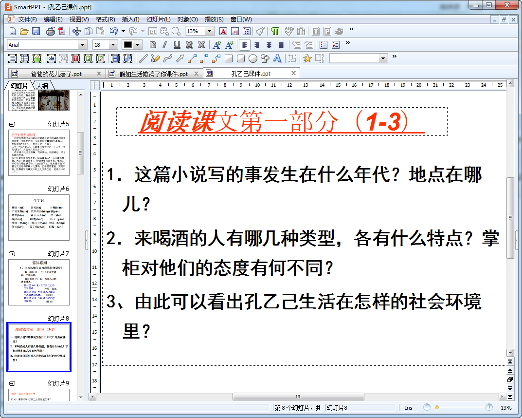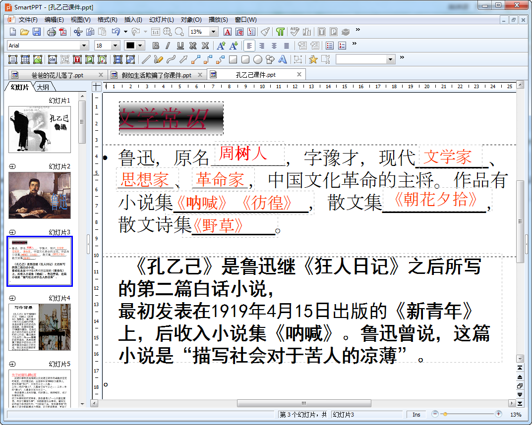 这是语文课文孔乙己课件ppt,课件ppt共有32页,讲述了当时创造的时代背景以及作者介绍,再加上文章中的各种终点分析,这是非常全面的不篇课件ppt,需要的老师们可以来这边,我们东坡提供孔乙己ppt课件免费下载!
