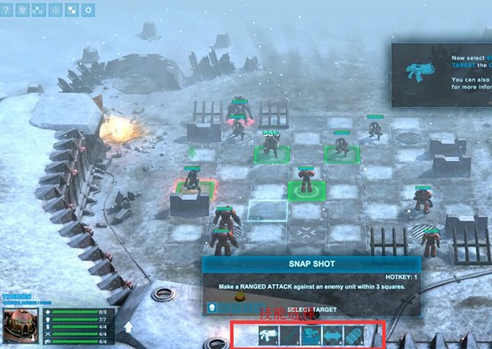 我们可以看到,当移动结束后,选择兵种也会出现各种不停的技能选项供玩家选择,有攻击防守AOE等等,当前的可选择技能多少也是根据行动值所决定的