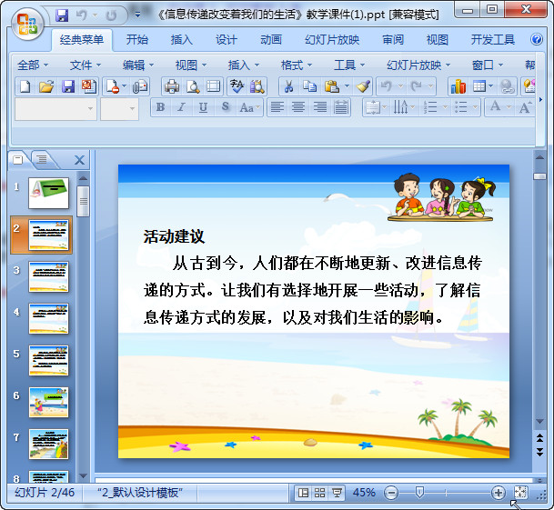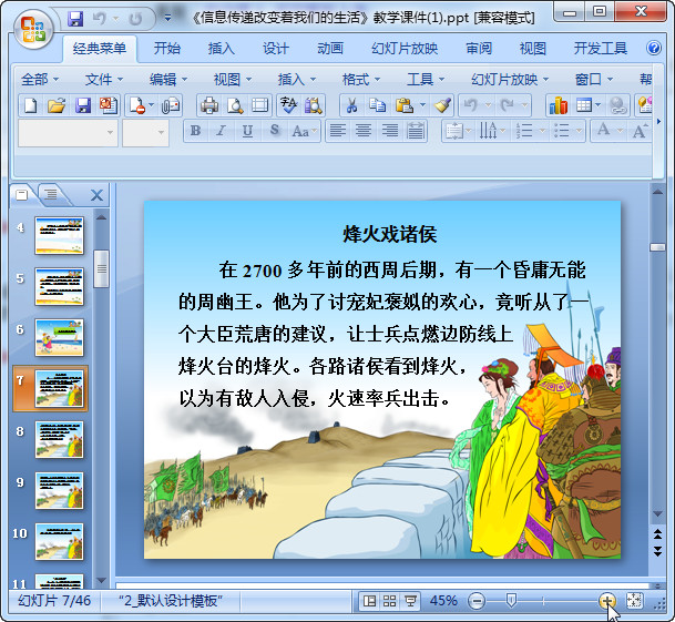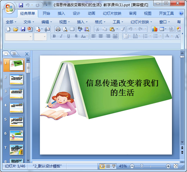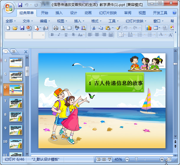 古代飞鸽传书、快马加鞭都是进行信息的传递。随着时间的不断发展,有电报,电话、qq、微信等信息传递方式,非常的多样化。下面跟着东坡小编一起来看看这份信息传递改变着我们的生活ppt课件吧!