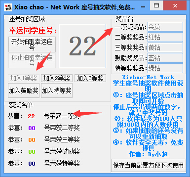 小超座号抽奖软件使用方法