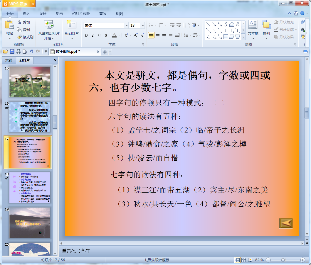 这是一篇语文课文滕王阁序教学课件ppt,内容充实,对课文中的各种重点都作出了解析,内容十分丰富的一部ppt又需要的老师们可以来这边下载看看,保证您需要!