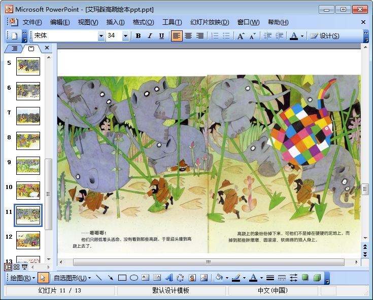 如果花格子大象艾玛绘本故事让你意犹未尽的话,那么不妨来读读艾玛踩高跷绘本故事吧!本节内容东坡小编为大家整理带来的是一份高清免费版艾玛踩高跷绘本ppt,该绘本故事ppt共由13页组成,点击本文相应的下载地址即可查阅该绘本的全部内容。