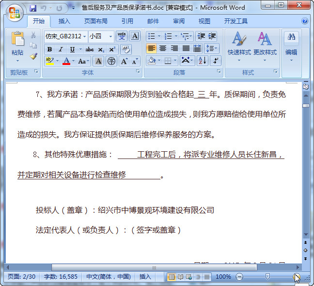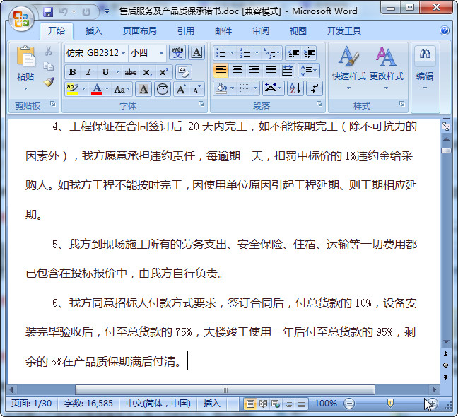 产品质量售后服务承诺书范文,总共有30页,写的非常的详细,里面包含了相关的违约条款、营业执照、资质证明等方面的内容,欢迎前来东坡下载使用!