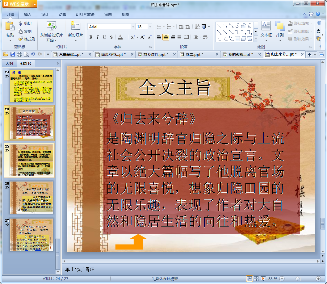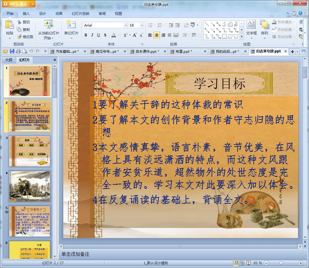 归去来兮辞并序课件ppt内容介绍