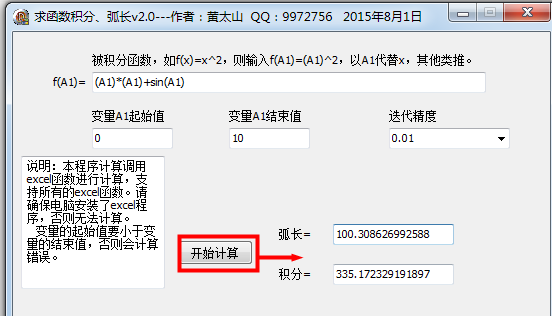 本程序计算调用excel函数进行计算,支持所有的excel函数。请确保电脑安装了excel程序,否则无法计算。