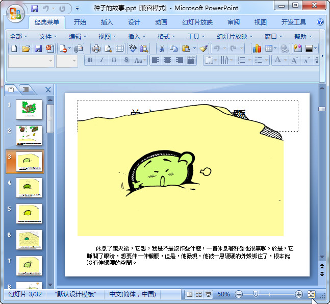 种子的故事绘本故事ppt,一份精美的ppt课件,对于孩子们来说,十分的有教育意义,在有趣的内容中,帮助孩子们学会感恩,学会爱,学会成长。欢迎前来东坡下载使用!