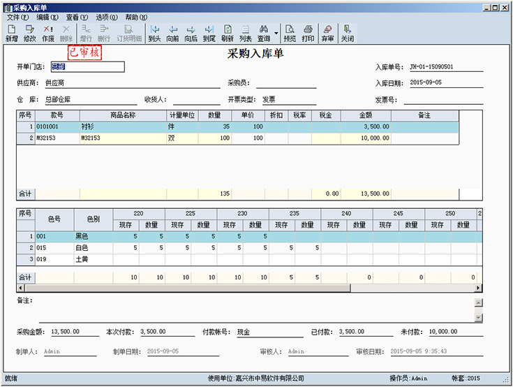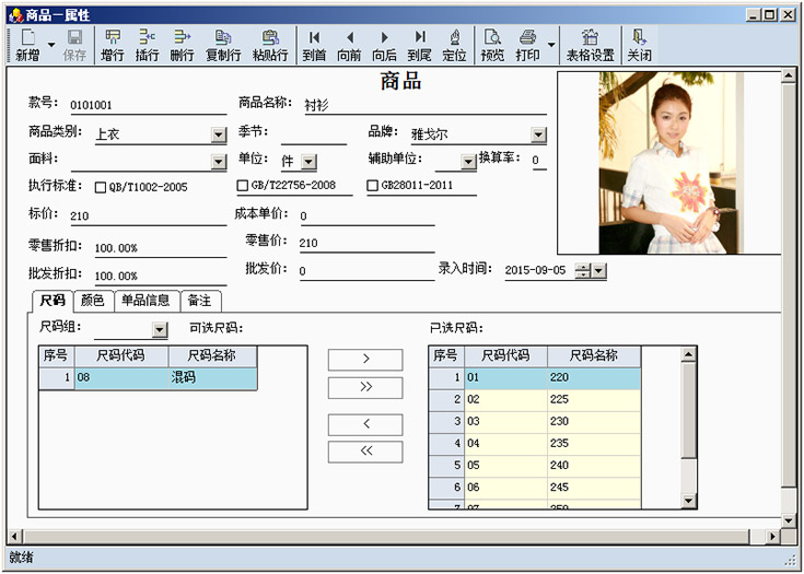 3、以子母表的方式输入和显示款号以及颜色尺码数据,使数据录入和管理异常方便快捷。