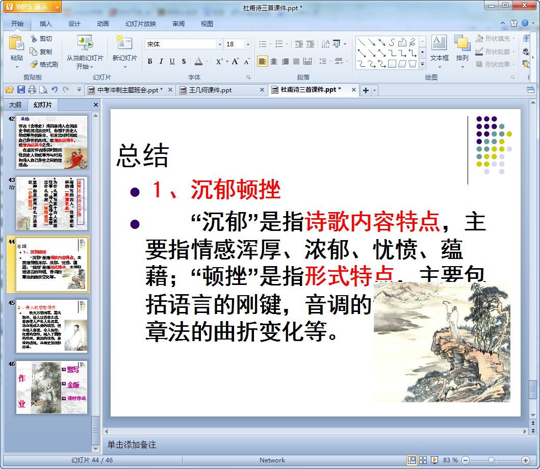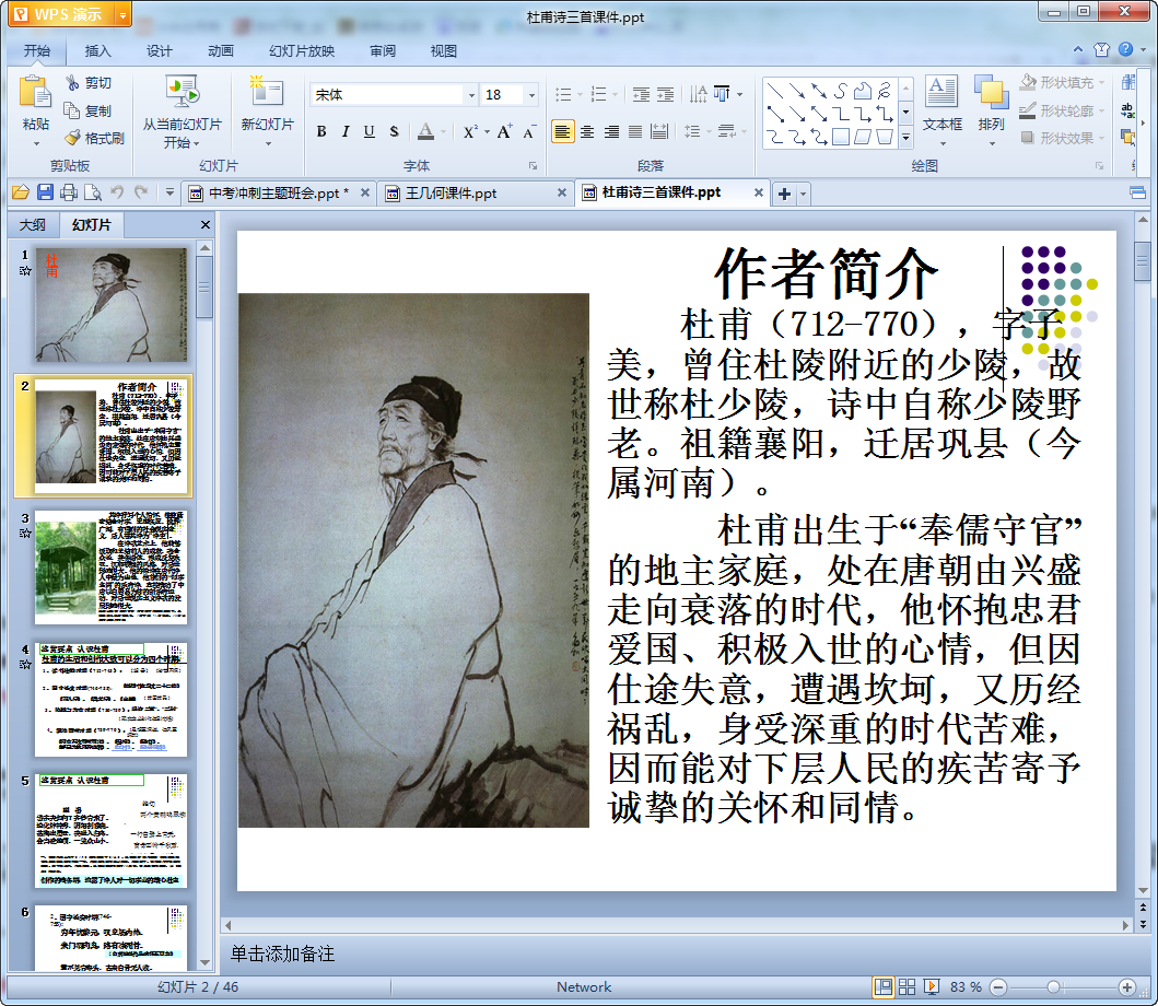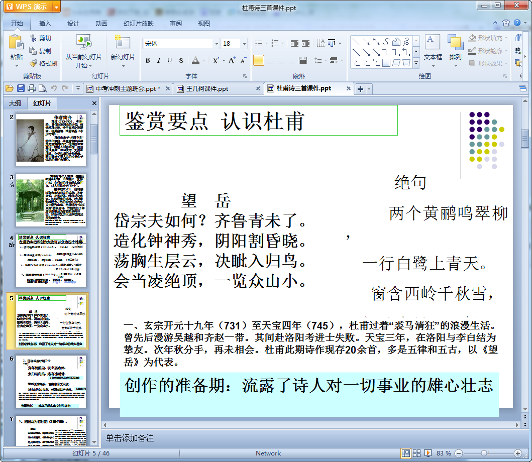 这是语文课文杜甫诗三首教学课件,制作的十分详细对作者的各种介绍都十分详细,文章需要注意的重难点也都有涉及,该ppt共有46页需要的老师们可以来这边下看看,东坡为你们提供免费的下载!