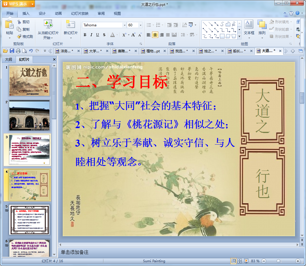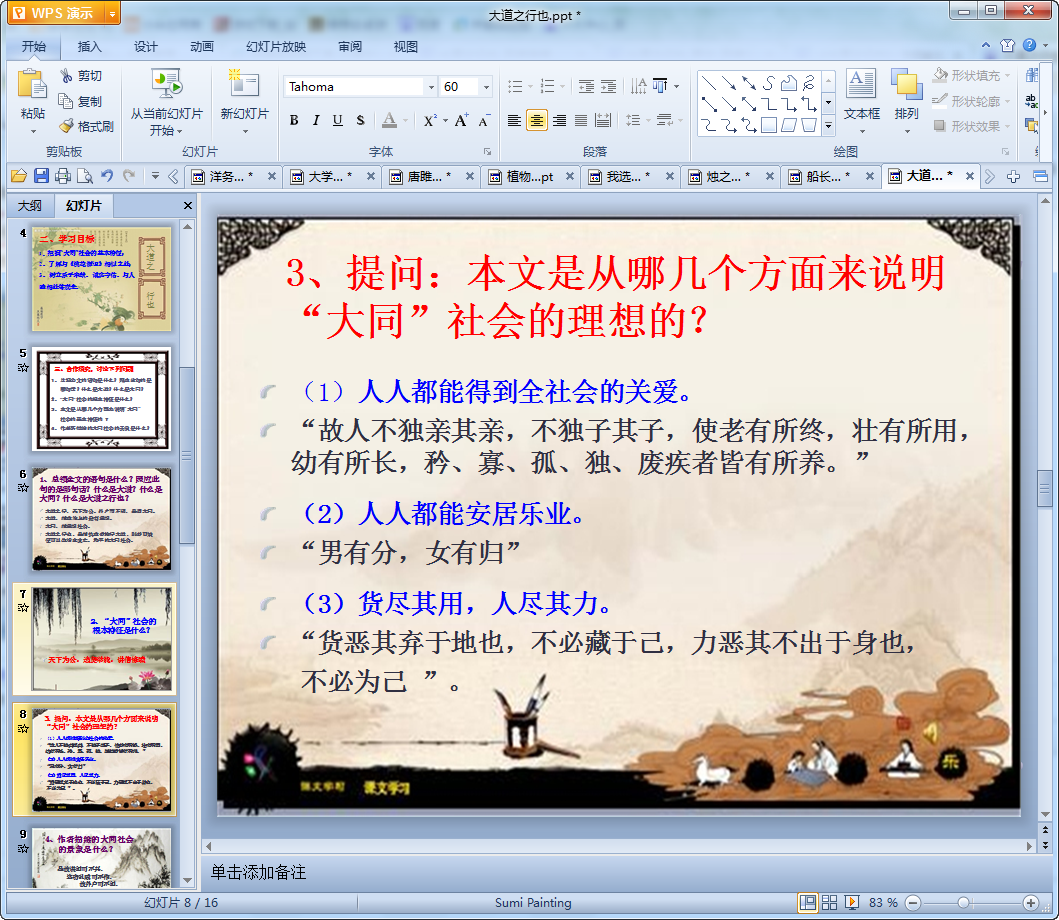 这是一篇大道之行也的教学课件,作为一部初二的语文教学课件,它制作十分精细,画风比较吸引人,课件内容也十分全面,什么广大老师们的喜欢,又需要的可以来这边,东坡为你们提供免费的下载!